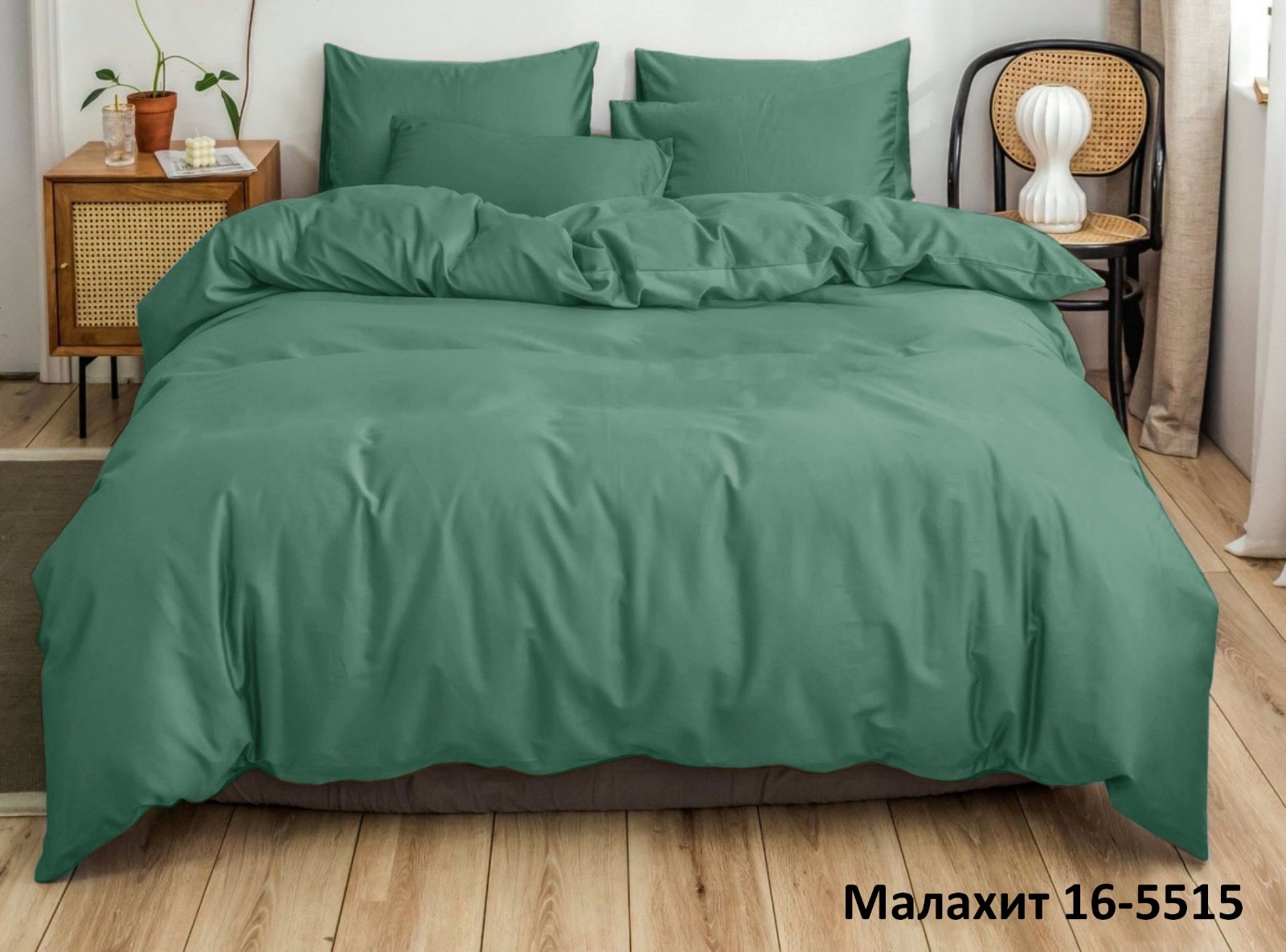 Однотонное постельное белье "Малахит". Состав ткани - полисатин, 100% полиэфирное волокно, плотность ткани 80 г/м2.