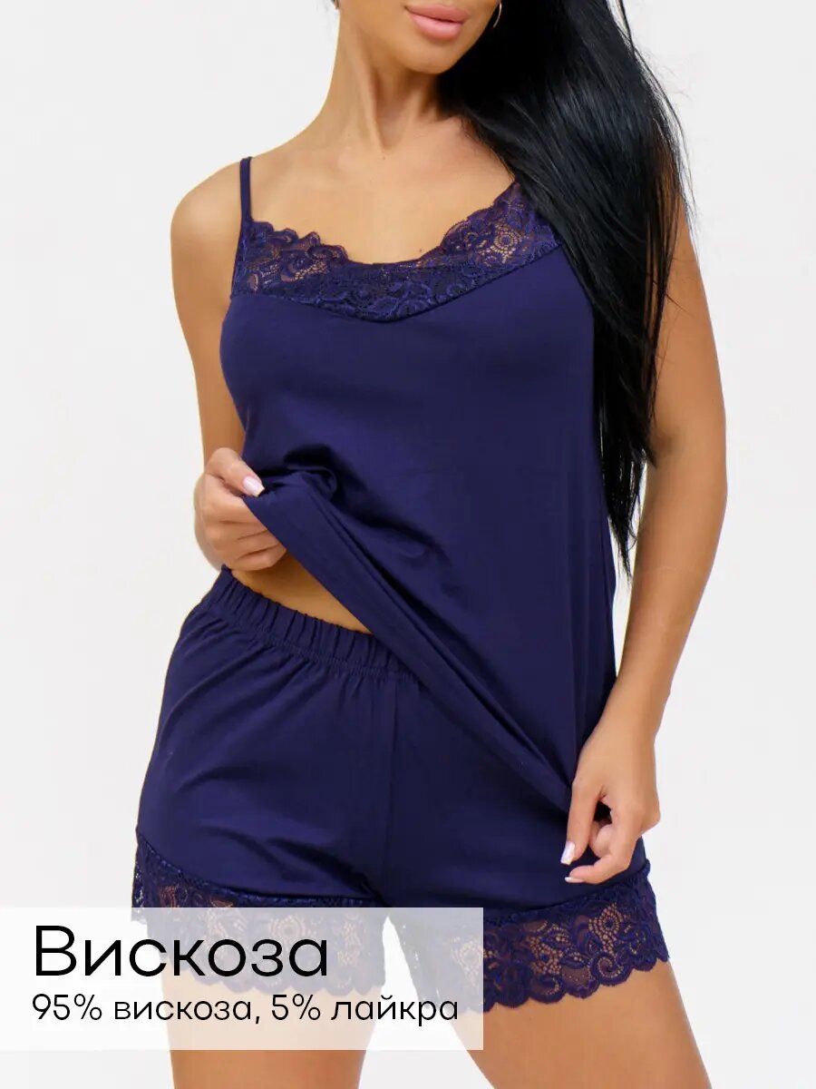 Комплект из топа и шорт. Низ шорт украшен ажурным кружевом, топ на бретелях и кружевом на груди.