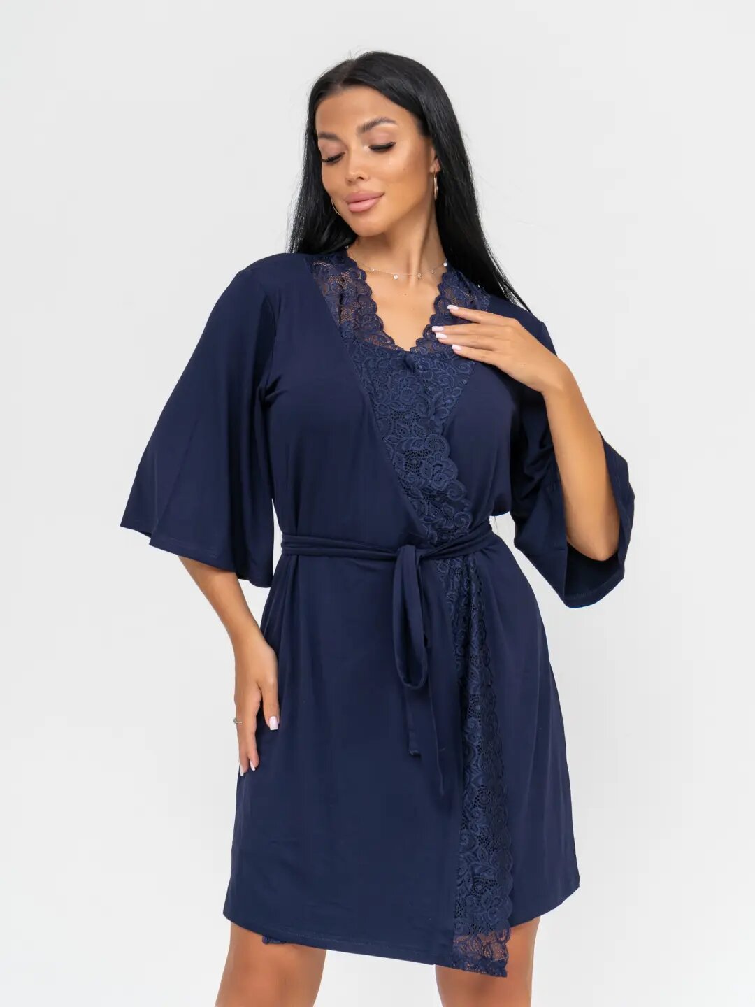 Струящийся пеньюар с расклешенными рукавами. Срезы обработаны ажурным кружевом.