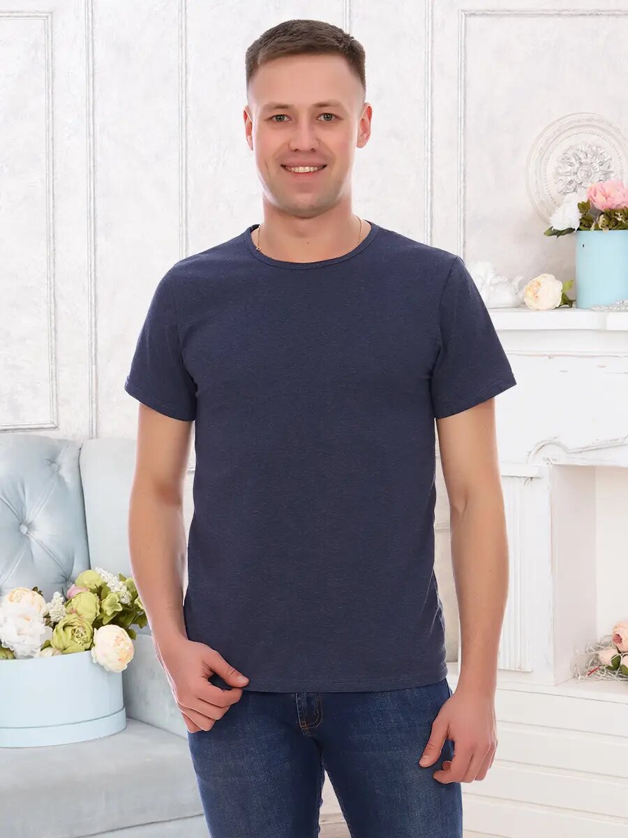 Футболка мужская с коротким втачным рукавом, горловина круглой формы.