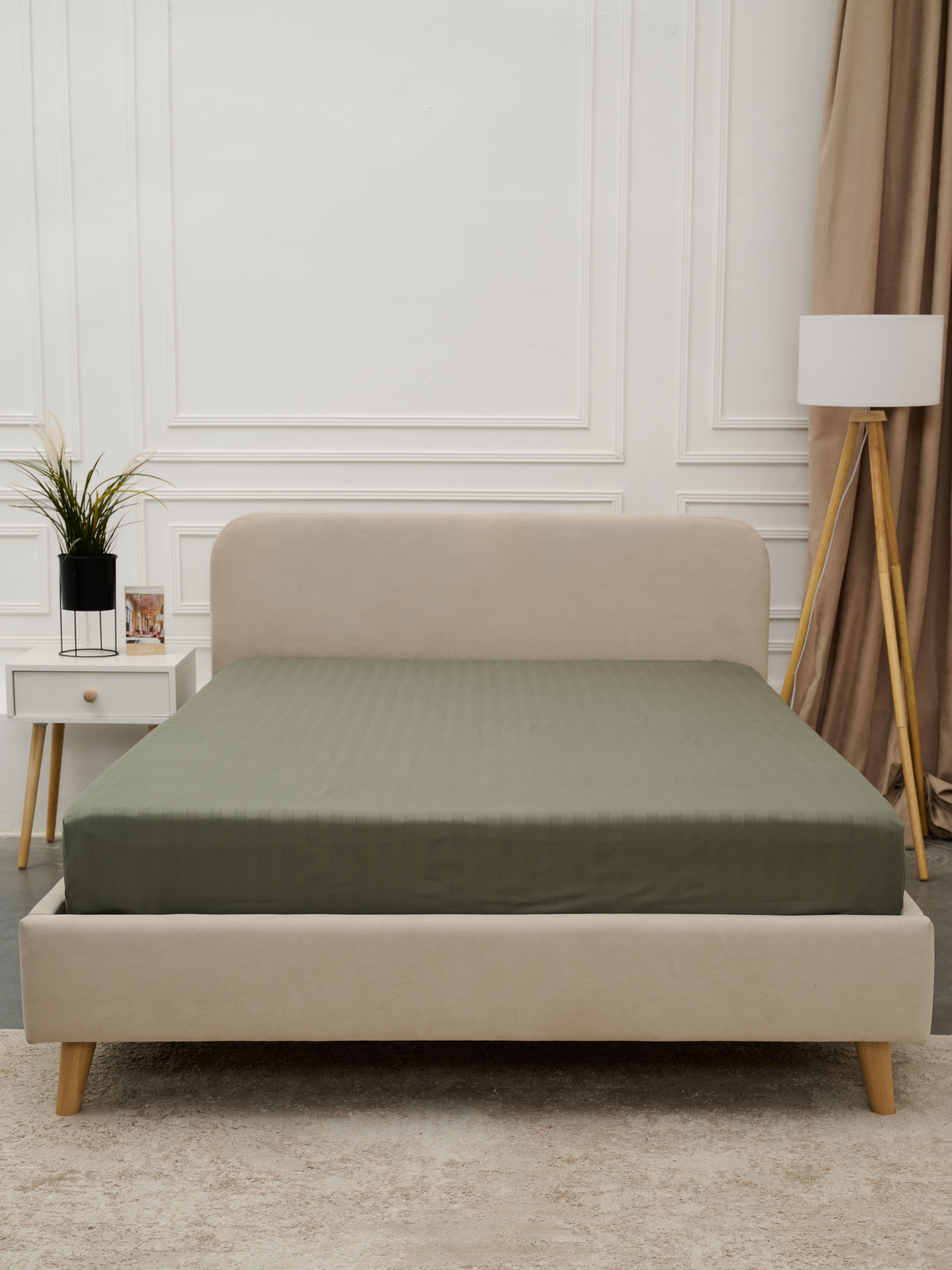 Простыня Микрофибра Страйп на резинке - Хаки