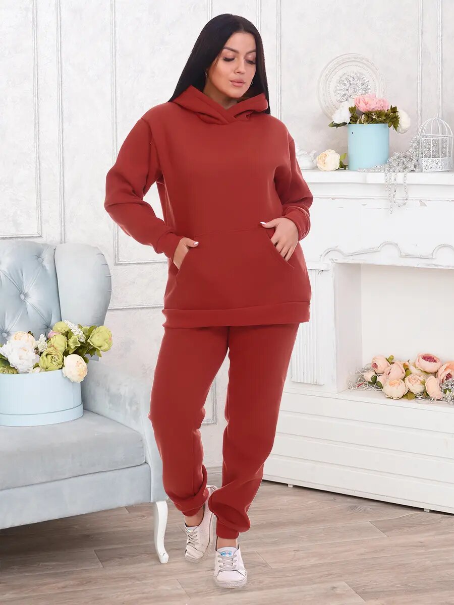 Костюм женский. Куртка со спущенным рукавом на манжете, двойным капюшоном и накладным карманом. Брюки на притачном поясе с резинкой, по низу изделия манжета. На передней части брюк - карманы.
