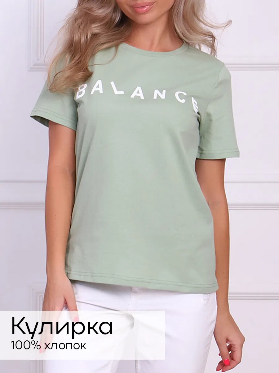 Футболка женская с коротким втачным рукавом, горловина круглой формы, на детали переда печать.