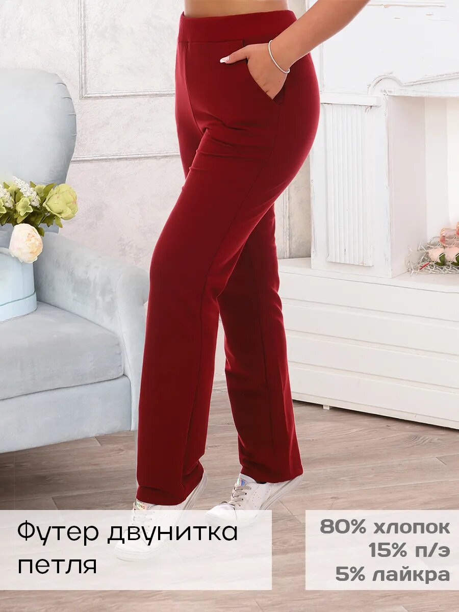 Брюки прямые на притачном поясе с резинкой с карманом в боковом шве.