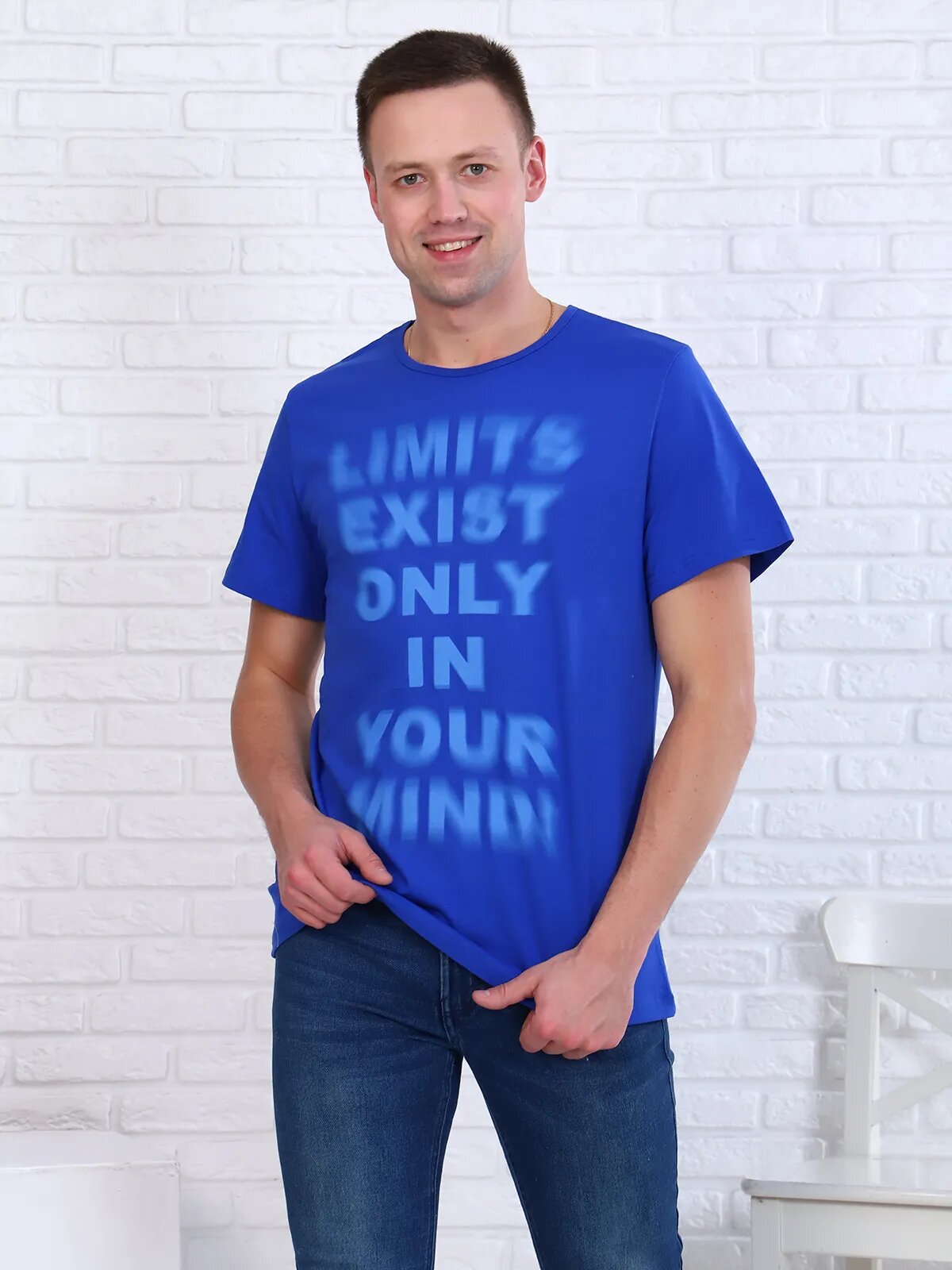 Мужская футболка свободного кроя из хлопчатобумажного полотна с коротким рукавом. На полочке выполнен оригинальный принт. Горловина футболки окантована, низ рукавов и футболки подшиты на плоскошовной машине.