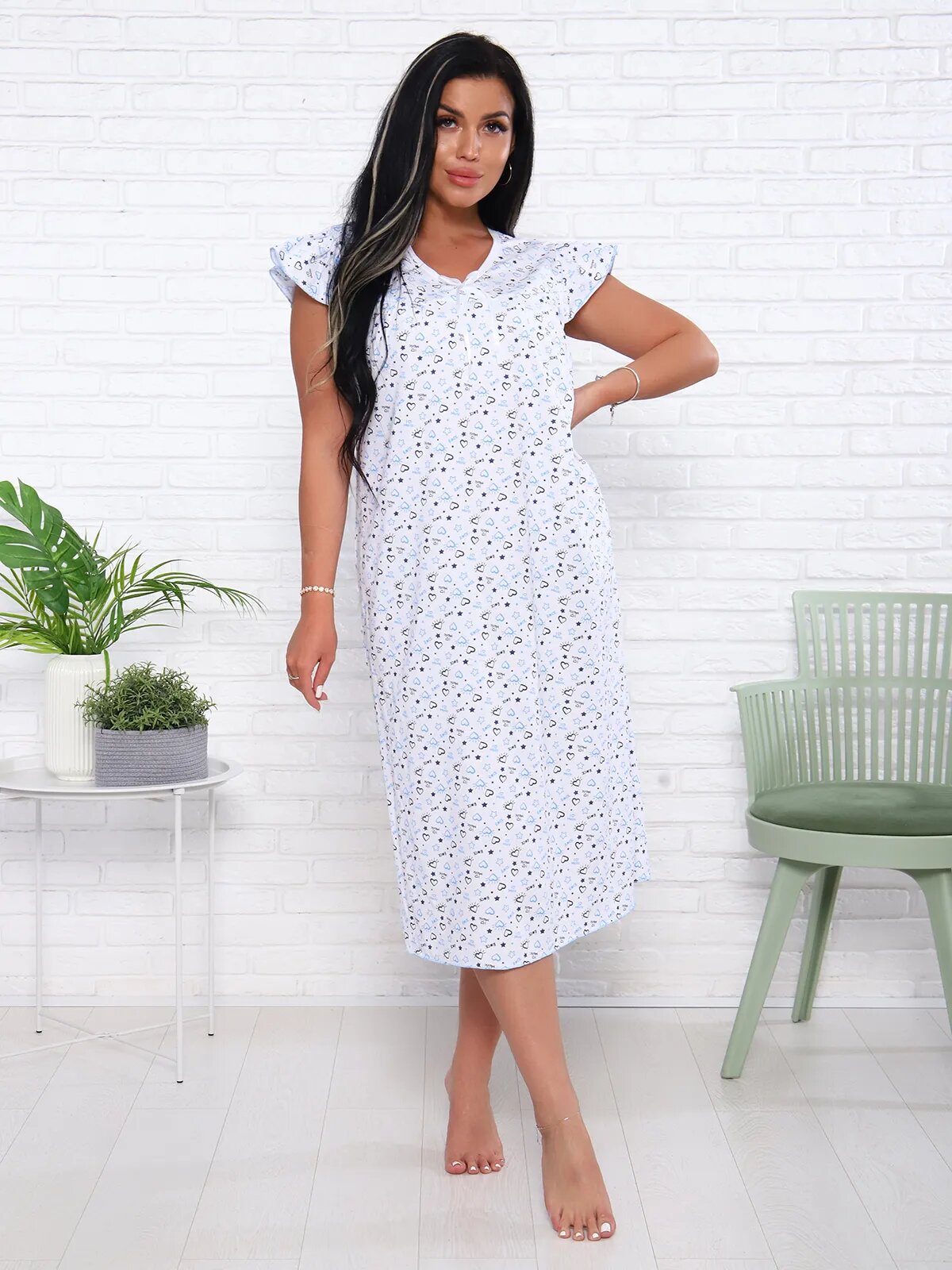 Женская сорочка свободного покроя с кокетками и рукавом - крылышком. Горловина сорочки окантована. Низ крылышек и сорочки обработаны декоративной строчкой.