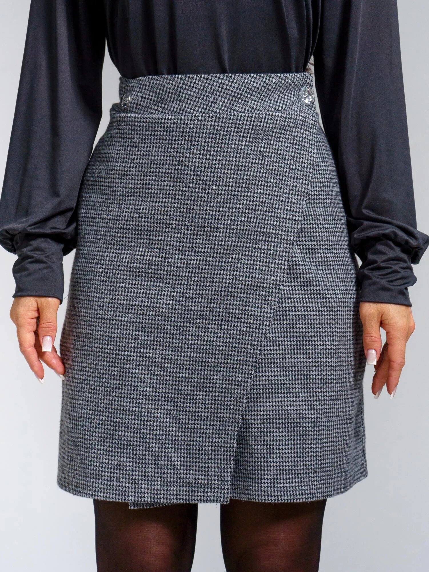 Юбка женская с запахом, фиксирующаяся на 2 петли-пуговицы.