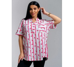 Туника женская с круглым вырезом горловины и рукавом 7/8. Низ туники, горловина, низ рукава обработаны швом вподгибку.