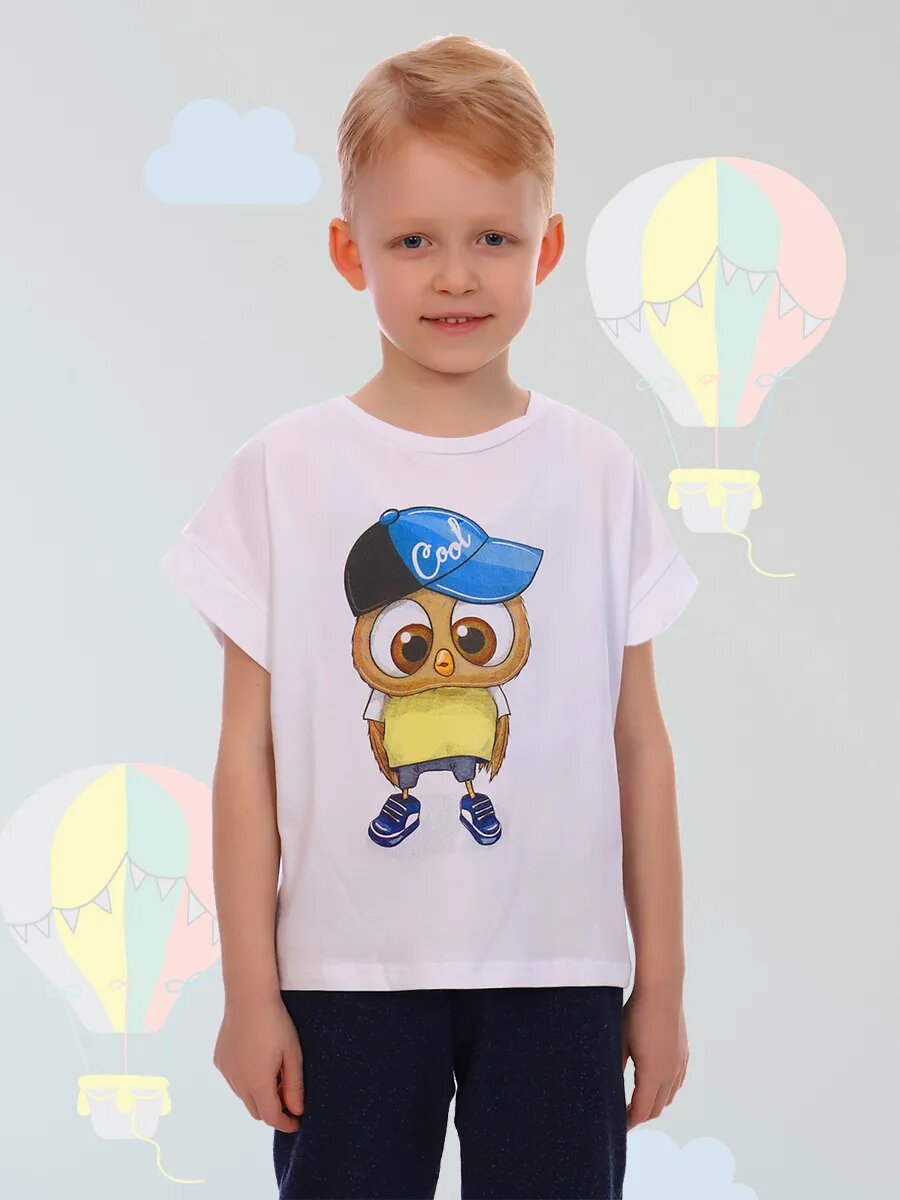Футболка детская для мальчика со спущенным плечом и манжетой, на детали переда печать.