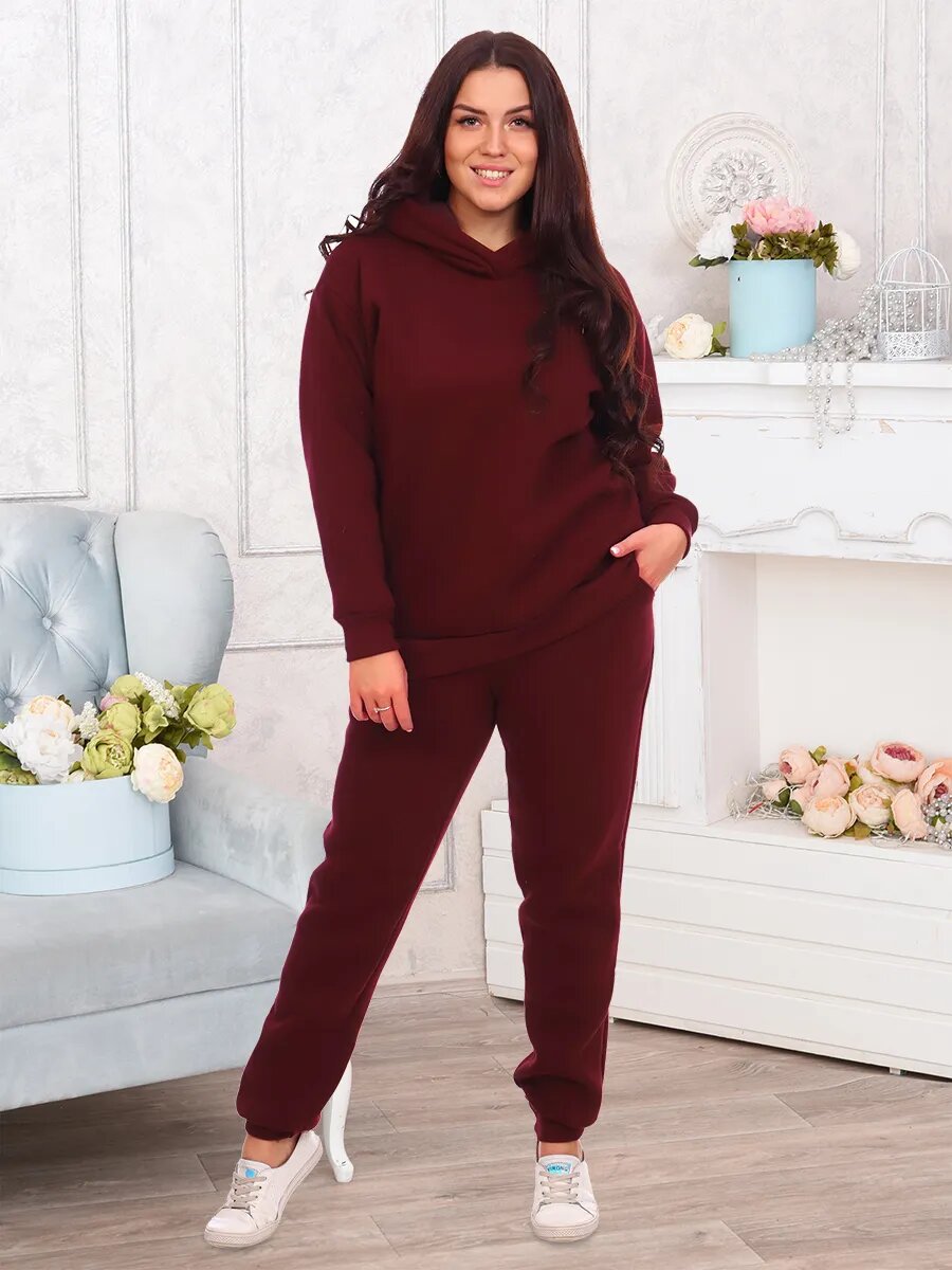 Костюм женский. Куртка со спущенным рукавом на манжете и двойным капюшоном. Брюки на притачном поясе с резинкой, по низу изделия манжета.