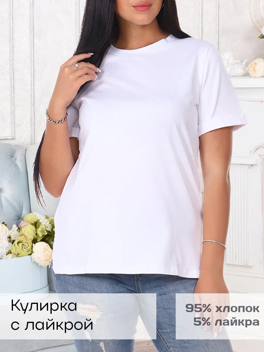 Футболка женская с коротким рукавом с отворотом, горловина круглой формы из отделочного материала, в боковых швах разрезы.
