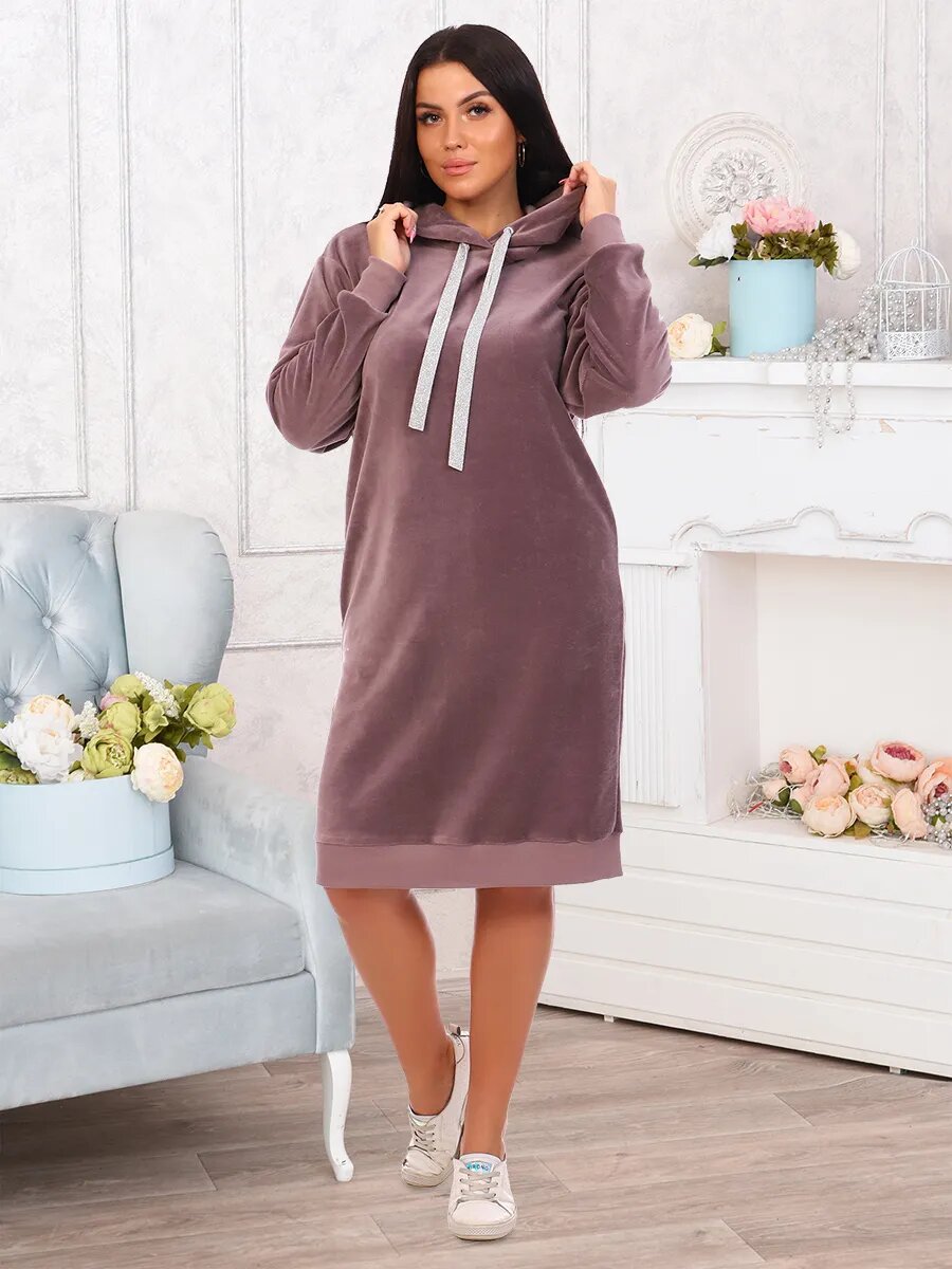 Туника женская с двойным капюшоном, в капюшоне декоративная лента. Манжеты и низ выполнены из кашкорсе.