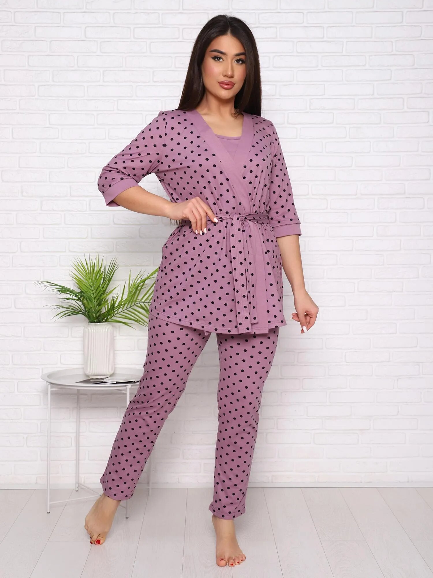 Нежность(лиловый) пеньюар+топ+брюки