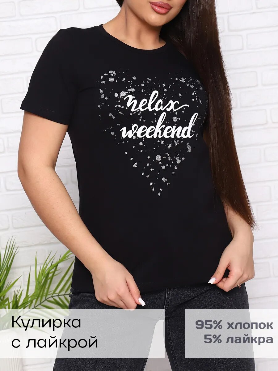 Футболка женская с коротким втачным рукавом, горловина круглой формы, на детали переда печать.