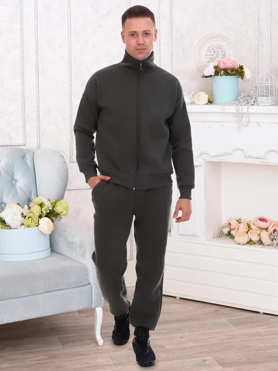 Костюм мужской из футера с начесом. Куртка с воротником-стойкой, боковыми карманами и разъемной молнией. Брюки на манжетах с боковыми карманами.