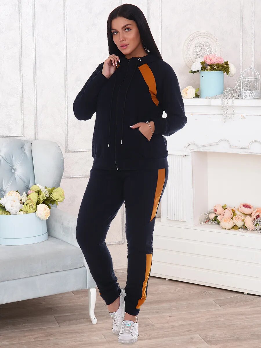 Костюм женский. Куртка с рукавом покроя реглан на манжете, капюшоном, накладным карманом. Застежка на тесьму-молнию. Брюки на притачном поясе с резинкой, по низу изделия манжета.