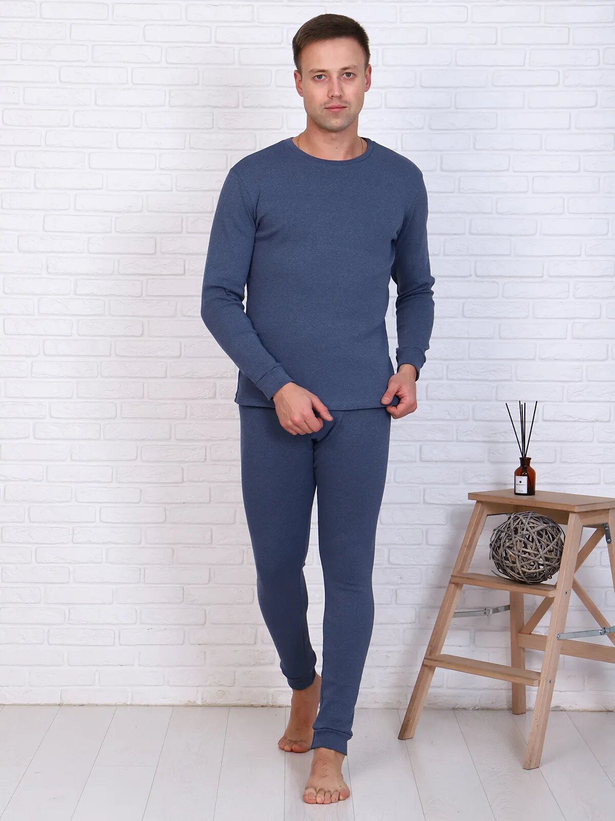 Мужской комплект нательного белья, состоящий из фуфайки и кальсон черного цвета. Выполнен из дышащего материала, сохраняющего ваше тепло. Низ рукавов фуфайки и низ кальсон на манжетах. Внутренний гульфик кальсон из хлопчатобумажного полотна. Верх кальсон на резинке.