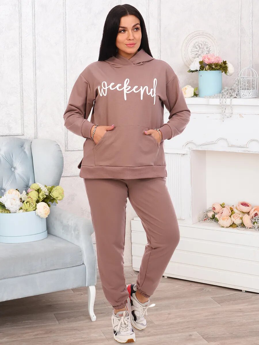 Костюм женский. Куртка с длинным втачным рукавом на манжете, по низу изделия притачной пояс. Брюки на притачном поясе с резинкой, боковым карманом, по низу изделия манжета.