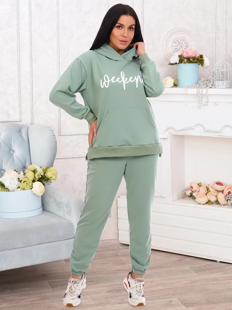 Костюм женский. Куртка с длинным втачным рукавом на манжете, по низу изделия притачной пояс. Брюки на притачном поясе с резинкой, боковым карманом, по низу изделия манжета.