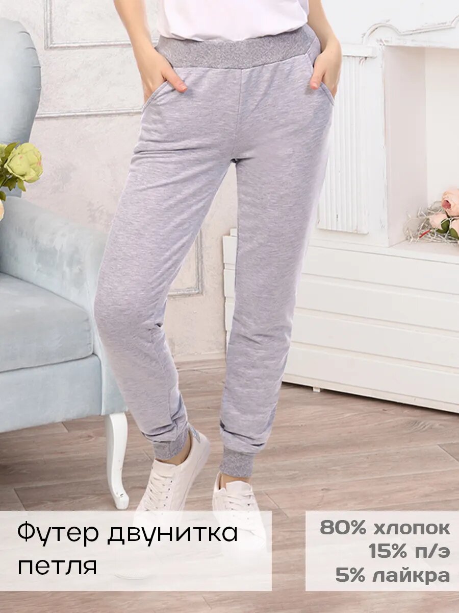 Брюки с боковыми карманами, пояс и манжеты из кашкорсе.