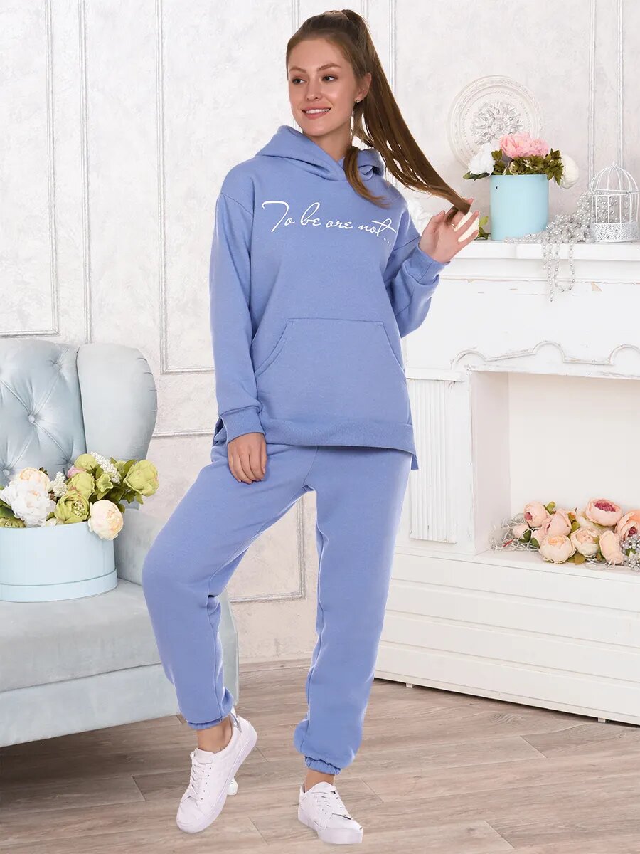 Костюм женский. Куртка со спущенным рукавом на манжете, двойным капюшоном, накладным карманом и оригинальным объемным принтом. Брюки на притачном поясе с резинкой, по низу изделия резинка.