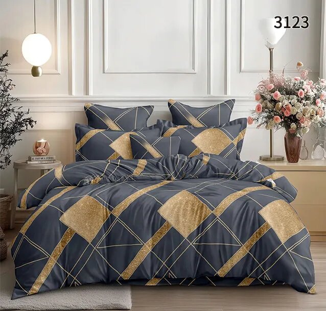 3123 КПБ бязь 1,5сп Вес изделия: 1.47 кг Размер наволочки: 70х70 2шт Размер пододеяльника: 145х214 Размер простыни: 145х214